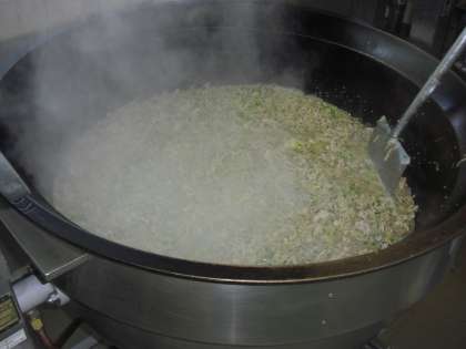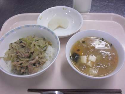 ねぎ塩豚丼 牛乳 とうがん入りみそ汁 くだもの
