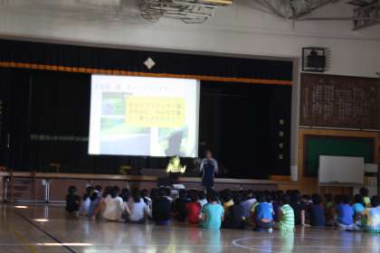 昨日までの涼しさはどこへやら、今日は暑い一日でした。5年生は10月1日からの、川場移動教室に向けて初めての学年集会でした。下見に行った時の写真や話から、どのような三日間になるかイメージが持てたようです。これからどのような活動になるでしょうか。そして4年生は、枝豆の収穫をしました。三粒の種からたくさんの収穫に、大喜びの子どもたちでした。