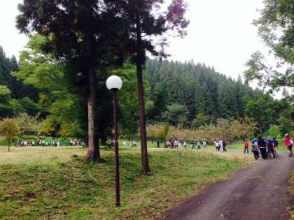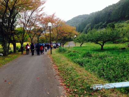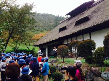 ガイドさんの話をお聞きしながら、里山と人とのかかわりを紅葉し始めた木々の中で教えてくださいました。