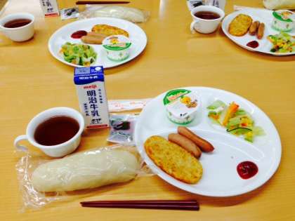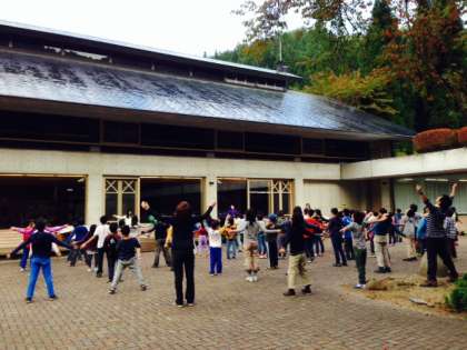 清々しい青空のもとに、元気に朝会でラジオ体操をしてから、川場最後の朝食です。