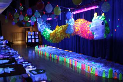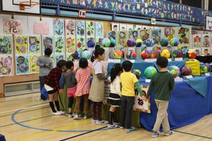 昨日・今日2日間にわたり、展覧会を開催しています。「つむぎだそう、作り出そう、つながりあおう」をテーマに、作品づくりに取り組んでまいりました。各学年の作品、舞台上の全校共同作品など力作ぞろいです。昨日の児童鑑賞日には、兄弟学年で鑑賞を楽しみました。互いに自分の作品を見せあったり、工夫したところを説明したり、ほほえましい姿が見られました。今日は17時閉館の予定です。どうぞ、ごゆっくりご鑑賞ください。
