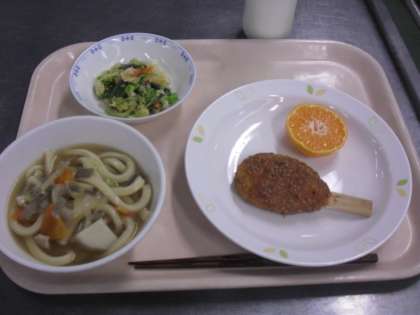 けんちんうどん 牛乳 五平もち