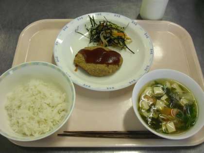 ごはん   牛乳   魚のハンバーグ   いそあえ
