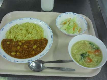 チリビーンズライス   牛乳   卵のふわふわスープ