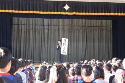 平成27年になりました。朝日に照らされる校舎に、3階の廊下から見える富士山に、すがすがしい気持ちにさせてもらえます。「あけましておめでとうございます。」と、元気に登校してくる子どもたちの声で、3学期がスタートしました。始業式では校長先生から、目標を持つというお話がありました。1年後、成長した自分のために、目標を持とう。自分の目標に向かってあきらめない、へこたれないでがんばろう。また、頑張っている友達を応援できる友達になろう。どの子も真剣に聞くその顔は、希望に満ちたいい顔をしていました。
