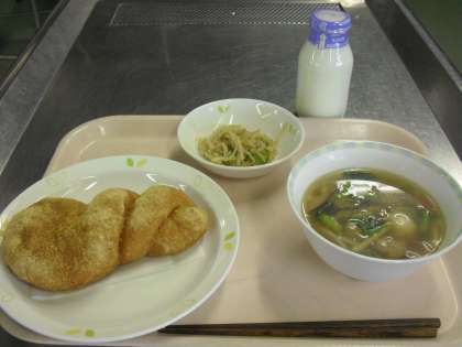 揚げパン   牛乳   魚のだんご入り春雨スープ