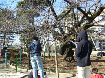 理科の時間を使って、春、夏、秋と続けてきた百年桜の観察です。