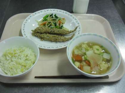 雑穀ごはん 牛乳 ししゃものごま焼き