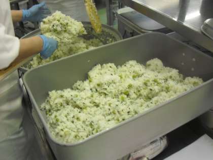 わかめ入りグリンピースごはん 牛乳 新じゃがのそぼろ煮