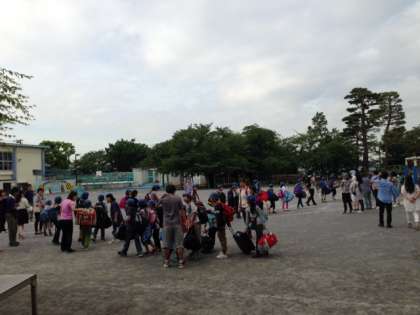 わくわくドキドキの気持ちが胸いっばいで、いよいよ出発です!お見送りの保護者のみなさんは、少し寂しそうです。