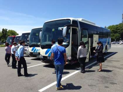 順調に2回目のトイレ休憩。晴天と清々しい空気、爽やかな景色で、砧っ子のみんなを迎えてくれました。いよいよ関越道をおり、一路、川場村へ!