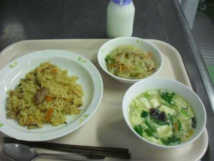 キムチチャーハン 牛乳 にらたまスープ バンサンスー