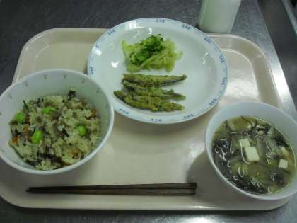 枝豆入り五目ごはん 牛乳 もずくのみそ汁