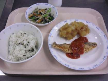 わかめごはん   牛乳   魚のチリソースかけ