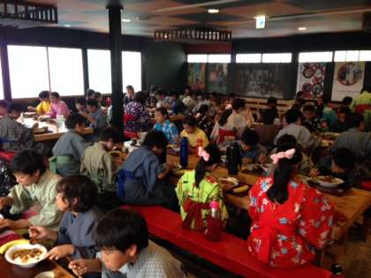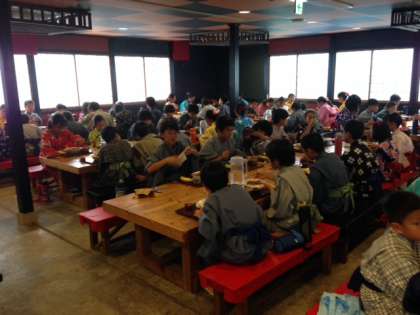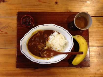 たくさん遊んだ後は、昼食のカレーとバナナをいただきました。とっても美味しかったです。昼食後は、いよいよ東京を目指します。