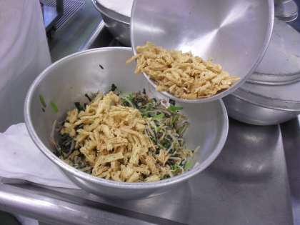 かりかり油揚げと野菜のおひたし 冷しそうめん汁