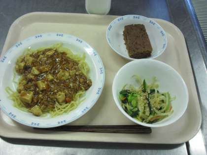マーボー豆腐焼きそば   牛乳   ナムル   おからマフィン