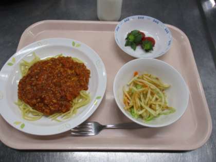 スパゲティーミートソース   牛乳   じゃがいものハニーサラダ