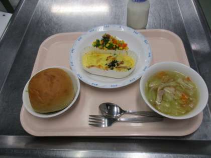 黒砂糖パン 牛乳 フレンチエッグ 野菜ソテー