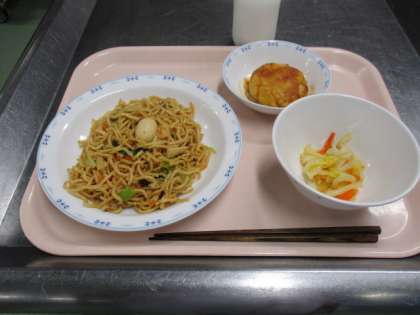 五目焼きそば 牛乳 辣白菜 じゃがいももち