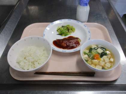 ごはん 牛乳 魚のケチャップソースかけ