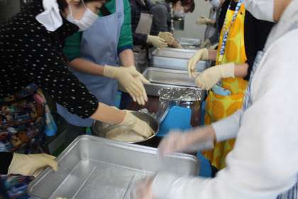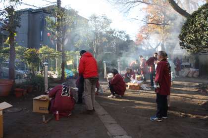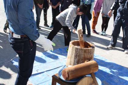 小春日和の青天の元、もちつき大会が行われました。朝早くから、たくさんの地域の皆様、お父さん、お母さんお手伝いいただきありがとうございました。かまどの湯気が立ち込める中子どもたちが登校しました。蒸しあがったお米を見て歓声が上がり、杵の動きに合わせて声をかけ、全員が杵を持ってもちをつきました。日本の伝統文化である「もちつき」を体験する貴重な1日になりました。
