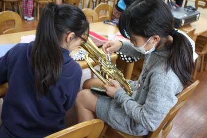 今日は5年生の鼓笛隊スタートの日です。我らがリーダー6年生から、パートごとにコツや心構えを教えてもらい、鼓笛の引継ぎがありました。明日から朝練習も始まります。