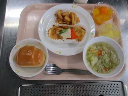 バターロールパン 牛乳 鶏肉のチーズ焼き フライドポテト
