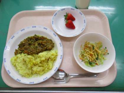 ドライカレーライス 牛乳 じゃがいものハニーサラダ
