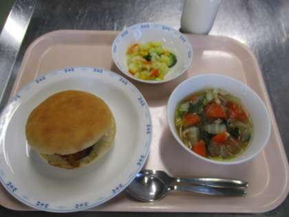 フィッシュバーガー   牛乳   白菜と春雨のスープ