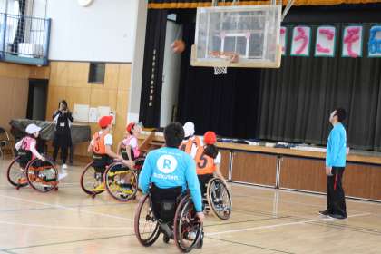 今日は、オリンピック・パラリンピック推進教育の一環として、ゲストティーチャーをお迎えして、6年生が特別授業を行いました。AEDの大切さを学び、操作の仕方を教えていただいたり、車いすバスケットの車いすに、実際に乗ってボールを投げたりするなど、子どもたちにとって、これからの人生を生きていくうえで力となる大変貴重な話と体験活動でした。