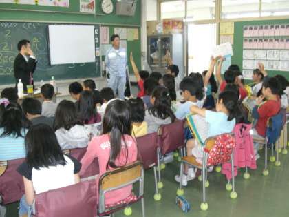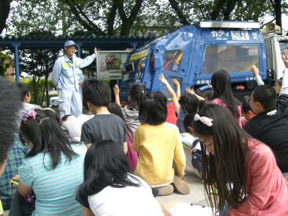 5、6時間目に砧清掃事務所の方にお起こしいただき、出前授業をしていただきました。「ごみのゆくえ」についてお話をいただいたり、質問コーナーを設けていただいたりしました。後半は、一人ひとりがごみの積みこみ体験車で回収のしかたを学ぶことができました。