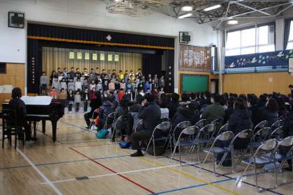 今年度最後の土曜授業でした。3年生はミニミニコンサート、4年生は1/2成人式がありました。子どもたちのきれいな歌声、真剣なまなざしから、1年間に伸びた力を感じることができました。たくさんの保護者の方に、ご参観いただきありがとうございました。