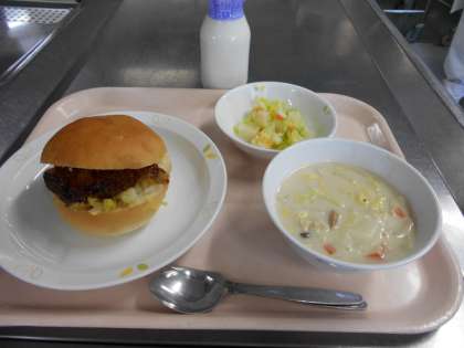 フィッシュバーガー 牛乳 白菜のクリームスープ
