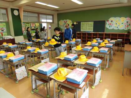 今日は、新しい6年生が登校して、新学期の準備をしました。特に、新入学の1年生の教室や入学式の準備などをしました。