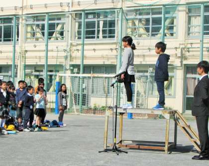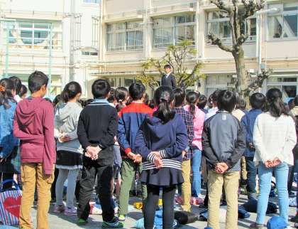 私は、はじめて朝礼台の上に立って話をしましたが、話をするのが嬉しくなるほどの上手な聞き方と態度でした。6年生の児童代表の言葉も前向きで、がんばっていきたいという決意がひしひしと伝わってきて嬉しく思いました。砧小学校の歴史と伝統をしっかりと受け継ぎ、推し進めていきたいと考えております。皆様方の変わらぬご理解とご協力をよろしくお願いいたします。