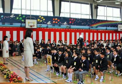 さわやかに晴れ渡たり、桜の花びらが舞う中、入学式が行われました。1年生は、とってもお行儀がよく、話を聞くのが上手でした。また、「起立」や「着席」の号令に合わせてさっと行動できるのが立派でした。