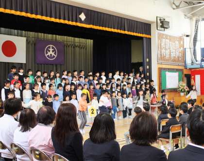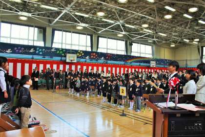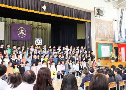入学式での見どころの一つは、2年生の歓迎の言葉です。1年前同じ場所で入学式をした2年生が、この1年間の成長を見せてくれました。声、姿勢、そしてやる気いっぱいの心が、演技から伝わってきます。