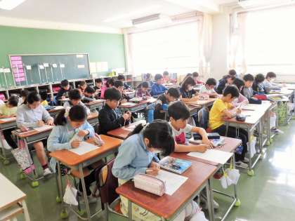 砧小学校では基礎学力の定着に向けて、始業前の朝学習に取り組んでいます。本日は算数で、計算プリントや計算ドリルに向かい、静かに集中して、真剣に取り組んでいました。計算などの基礎的技能の向上により、一人一人の基礎学力が定着するよう指導しています。