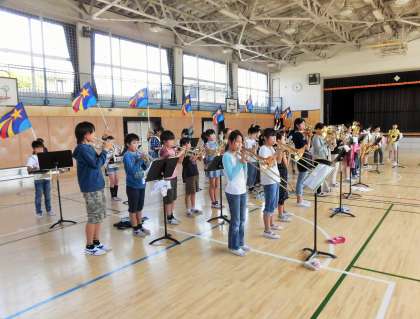 姿勢、タンギングをポイントに、みんなで音を合わせて曲をつくり上げています。日々上達をしている6年生にご期待ください!