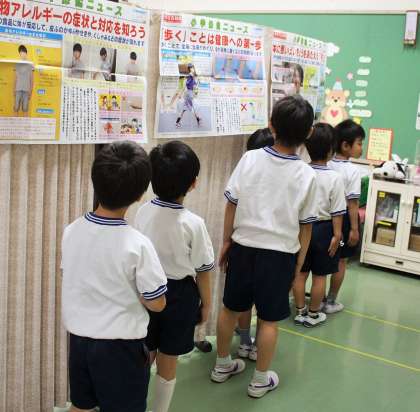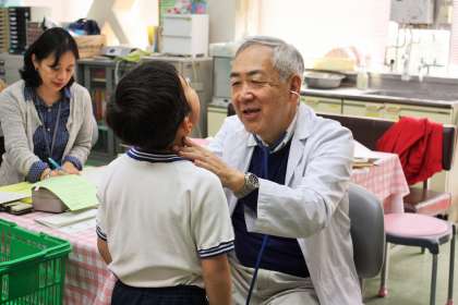 4月、5月は定期健康診断が続きます。内科検診、歯科検診、耳鼻科検診、眼科検診は学校医の先生に診察していただきます。1年生から6年生まで、しっかり整列して静かに順番を待って受診することができています。