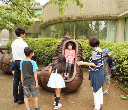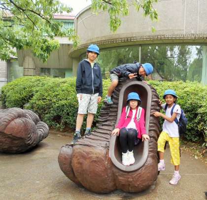 最後に、外の展示物の見学です。写真は三葉虫です。