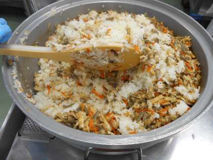 日本では、昔からお祝いごとのある時には、いつもと違う特別な料理をいただいて、お祝いする習慣があります。給食では砧小のお誕生日をお祝いするために、[ちらしずし]を作りました。
