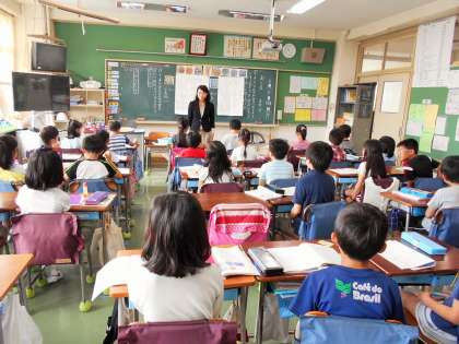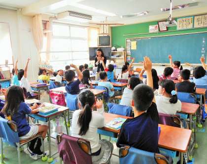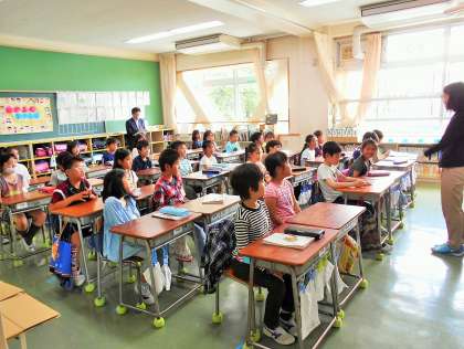 子どもたちが自主的に学習し、学力をつけていくには、教師が授業力を高めることが何より重要です。中田教諭は発問や板書、話し合いの進め方など、授業作りの基本をしっかりと意識して授業に臨んでいました。