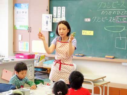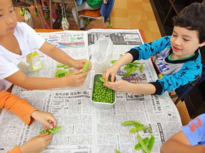 5/17 グリーンピースのさやむき体験〜1年生〜