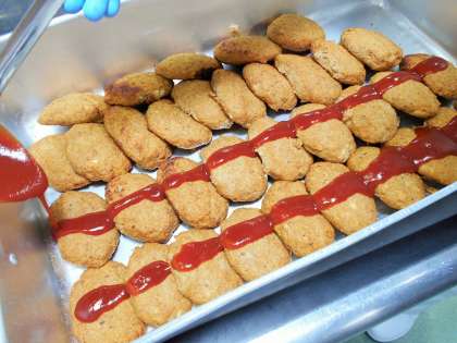 魚が苦手な子どもたちも、今日は豆腐とおからを加え、ハンバーグの形にしたので食べやすかったようです。
