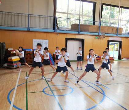 行進をしながら、音がずれないようにすることはなかなか難しいことです。6年生のがんばりを楽しみにしています。
