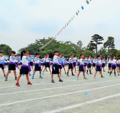 2、1・2年生 表現「もえよ!砧のドラゴン」