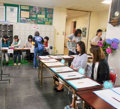 学校公開期間中は、PTA学級委員の方々が交代で受付をしてくださっています。ご多用の中、ありがとうございます。