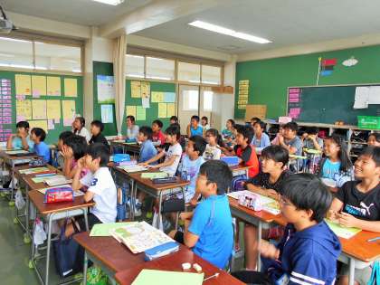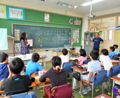 今日は5・6年生の英語活動がありました。担任の先生と英語支援員の八尾先生による授業です。5年生は、How many?の使い方を中心にチャンツやクイズでの授業が展開され、とても楽しそうな雰囲気です。